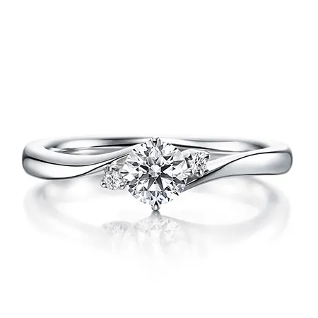 ゆるやかなウェーブとシャープで細身のアームがダイヤモンドを引き立てるエンゲージリング。