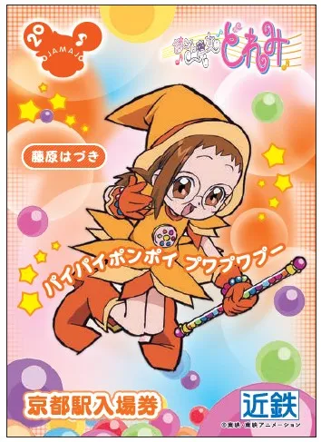 今回近鉄では、京都駅、近鉄奈良駅を含む5駅で「おジャ魔女どれみ」のキャラクターをデザインしたトレーディングカード型特製入場券を発売し、5駅分の入場券を集めた方にはオリジナルデザインのトレーディングカードをプレゼントします。また、特製入場券発売駅5駅にはキャラクターの等身大パネルを設置します。