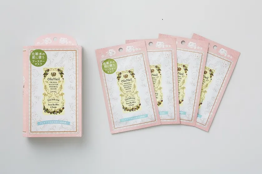 Olio Veilプライマル ブースターハーバルマスクは、週に1回化粧水の前にご使用いただく導入マスクです。