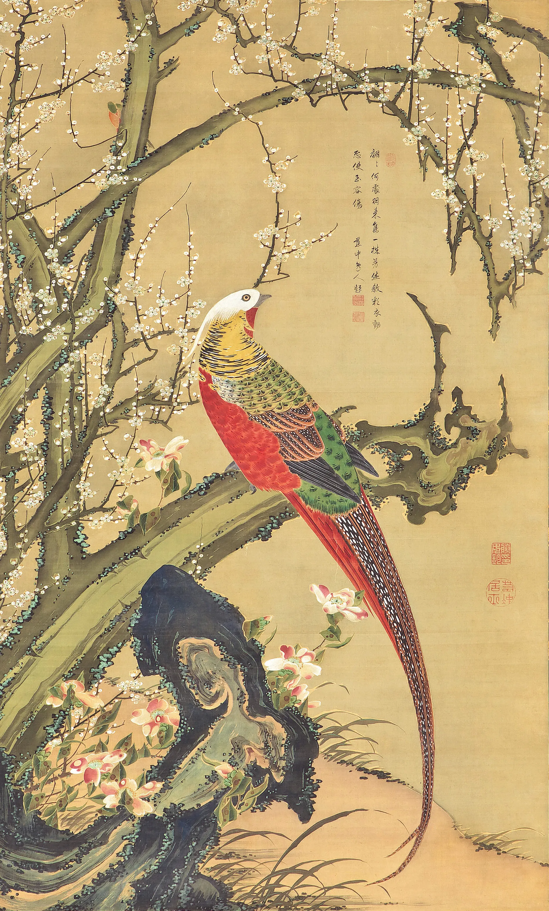 白梅錦鶏図 伊藤若冲筆 梅荘顕常賛