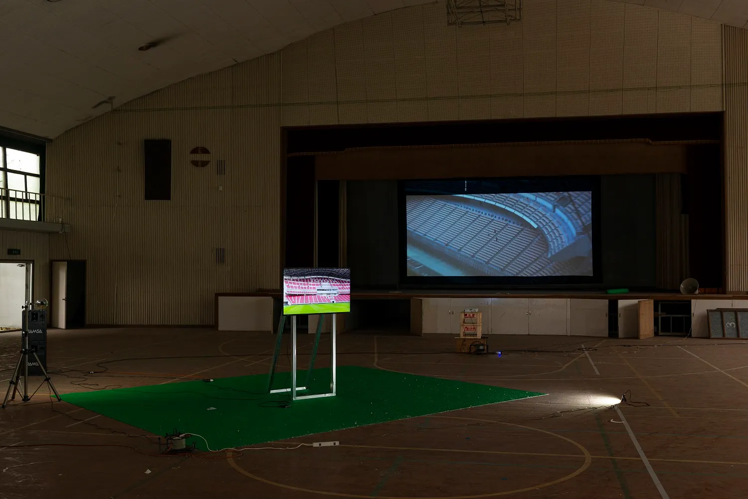 音響アーティストの荒木優光は,音楽やフィールドワークを起点とした作品を劇場で上演するほか,インスタレーションとして美術館やギャラリーでも作品を発表しています。近年では,「あいちトリエンナーレ2019」の関連企画として,豊田スタジアムの中継機能を用い,声楽家の音声を一つの合唱へと再構成する大規模な作品も制作しています。ドキュメンタリーやフィールドレコーディングを素材にフィクションの空間を創出してきた荒木は,音響機材の性質を生かし「フィクションが生み出されていく構造」そのものを露わにすることで,「現実」と「創出されているフィクション」の二重性を鮮やかに提示します。本展では,音をめぐる荒木の多角的な活動を紹介するとともに,聞こえくる音と人間の想像力との関係性を,即興性やパフォーマンス的要素を取り入れながら展示します。