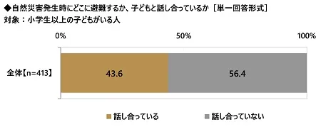 次に、自然災害発生時にどこに避難するか、子どもと話し合っているか聞いたところ、「話し合っている」は43.6%となりました。
