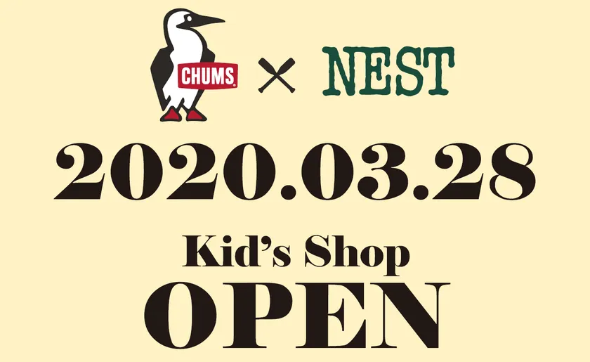 静岡県焼津市にカジュアルアウトドア・ナチュラルウェア・生活雑貨の「NEST」を展開する、株式会社三保原屋(本社:静岡県静岡市葵区、代表取締役:堀 達憲、以下 NEST)は、カジュアルアウトドアで人気の「CHUMS」のキッズアイテムを取りそろえたCHUMSキッズショップinNEST焼津を、2020年3月28日(土)オープンいたします。