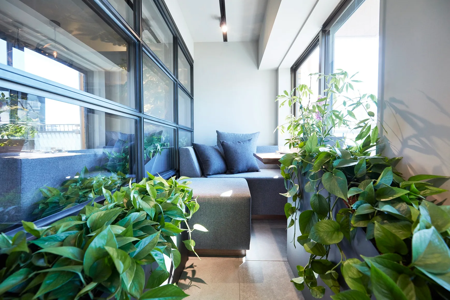 都心のマンションでも、緑に囲まれた、こもれる空間を窓際につくることでクリエイティビティが高まる環境がつくれます。建具で区切ることで、音もシャットアウトし集中できる空間です。