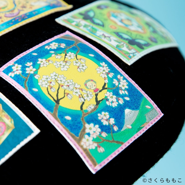そのカラフルで不思議な世界観から、ファンの間でも人気の高い扉絵が、クラシックなベレー帽のフォルムとマッチしたデザインに仕上がっています。裏地にはオリジナルの総柄生地を使用した、細部までこだわりの詰まったアイテムです!