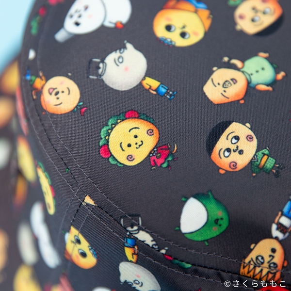 個性豊かなキャラクターたちのオリジナル総柄生地で仕立てたバケットハット。