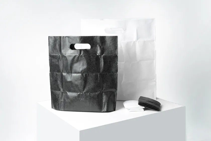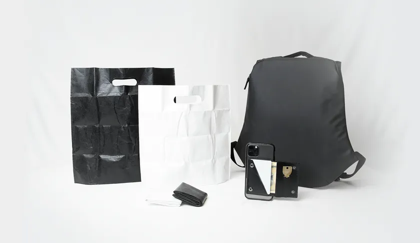 紙のような質感ながら、多機能素材を使用した「手ぶらエコバッグ」