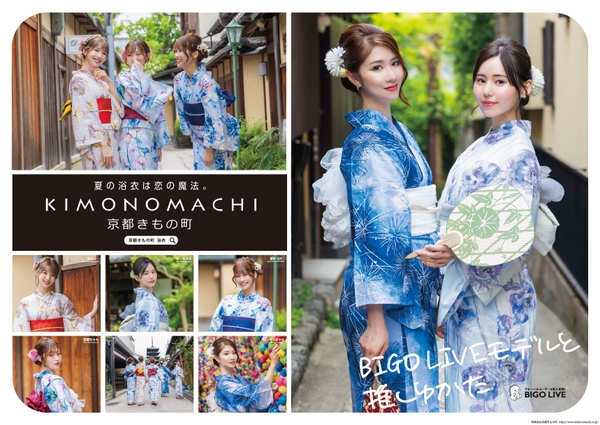 京都発の和装ブランドKIMONOMACHI(有限会社京都きもの町、京都府京都市、代表取締役:久保村一文)は、ライブ配信アプリ「BIGO LIVE(ビゴライブ)」にて京都きもの町PRイメージモデルオーディションを開催しました。多数の応募者の中から、ひぃちゃん さん、なっちゃん さん、ぽよ さん、まりっぺ さん、豆腐ちゃん さんが選ばれ、7月16日、京都きもの町サイトにて特設ページも公開しました。KIMONOMACHIはメディア衣装提携実績が豊富なブランドです。また「BIGO LIVE(ビゴライブ)」は日本やアメリカ、ヨーロッパ、韓国、東南アジアなど世界150の国と地域でサービスを展開し、全世界で4億を超えるユーザーを抱える人気ライブ配信アプリです。彼女たちの身に着けている浴衣は2024年新作オリジナルブランド『KIMONOMACHI』の2024年新作浴衣で、2024年4月よりオンラインストアにて予約販売を開始しています。