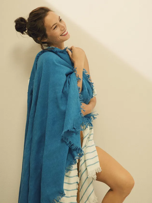 旧式の織機を大切にメンテナンスをかけながらゆっくり生産すること、日本の職人による古き良きものづくりの技術を大切にし続けることで、ムードあるストールづくりとサスティナブルを実現しているブランド。リネンやシルクなど上質な素材に繊細なムードのカラートーンをのせることで、バカンス先のみならず都会(まち)にスタイリッシュに馴染むアイテムに仕上げています。