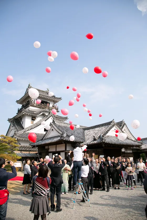 珊瑚婚式バルーンリリース