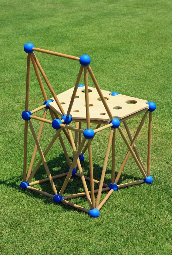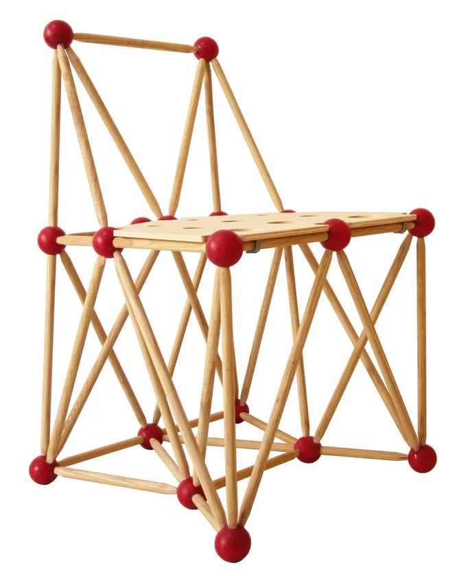 「truss1」はアートでもない、オブジェでもない、ただの椅子。その構造は巨大建造物をも支えるトラス構造。直径16mmの丸棒が幾つにも交差しながらカラフルなボールへと導かれています。この異彩を放ったデザインが空間とマッチした時、その存在感はひときわ際立つでしょう。この椅子しか似合わない空間、きっと在ります。