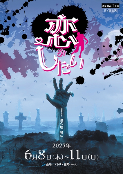 演撃Style-T企画(代表:渡久地雅斗)主催、演撃Style-T企画 第2回公演『恋がしたい』が2023年6月8日 (木) ~2023年6月11日 (日)にアトリエ銘苅ベース(沖縄県那覇市字銘苅 203 番地)にて上演されます。