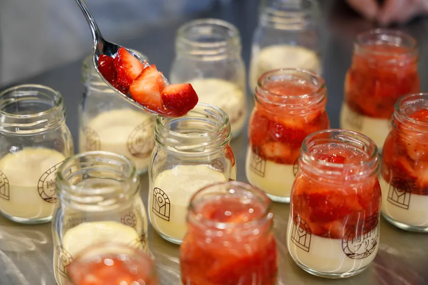 生いちごプリン製造風景