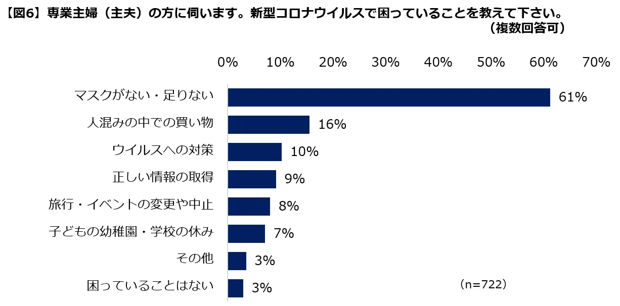 3:専業主婦(主夫)の方が困っていること、1位は「マスク不足」。(図6)