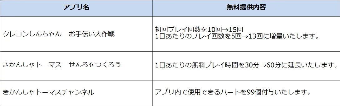 ≪対象知育アプリと無料提供内容一覧≫