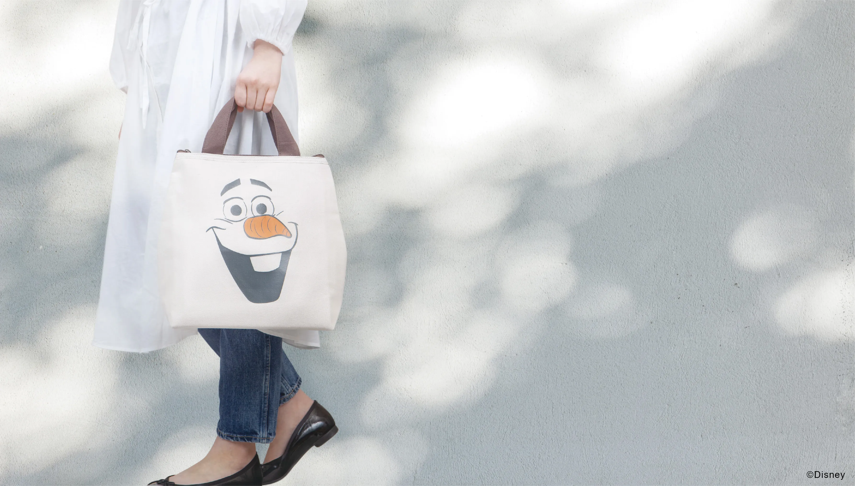オラフのフェイスプリントがキュートなキャンバス生地の保冷バッグは、これからの季節にランチBOX等の持ち運びや、