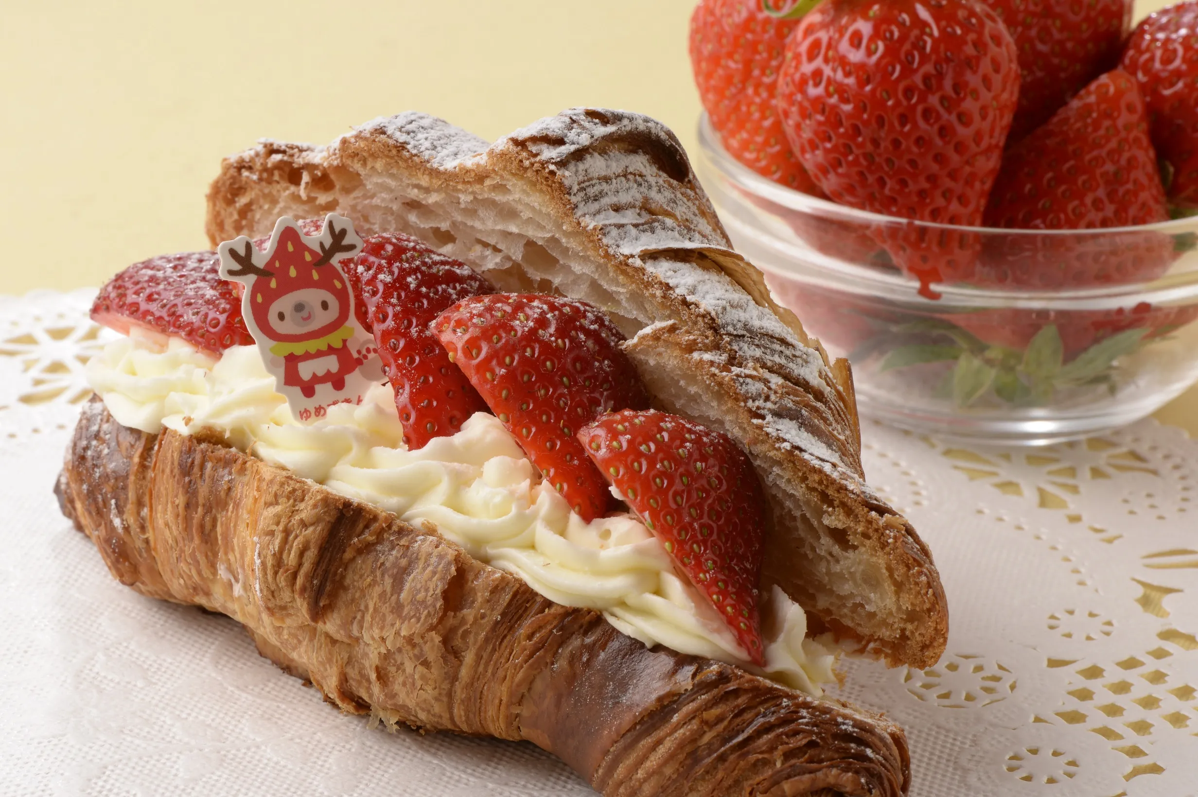 サクサクのバター香るクロワッサンに、北海道産ミルクを使用した練乳クリームとフレッシュな「ゆめのか」をたっぷりデコレーションしました。