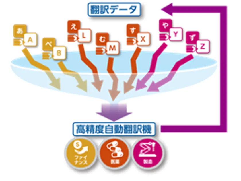 国立研究開発法人情報通信研究機構(以下、NICT)から技術提供を受けて開発した商用のAI翻訳サービス。NICTでは総務省と共に翻訳データを収集し機械翻訳エンジンの精度を高めるためのプロジェクト(翻訳バンクプロジェクト)に取り組んでおり、さまざまな企業からの翻訳データを収集することにより日増しにその精度を高めています。