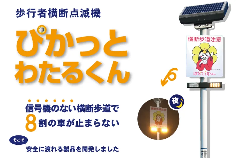 信号機のない横断歩道での交通事故を防ぐ「ぴかっとわたるくん」 安全な社会を目指して販売を強化