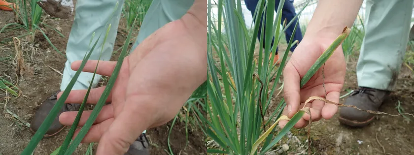 ニラへのフジミン散布事例(左:散布 右:無散布)