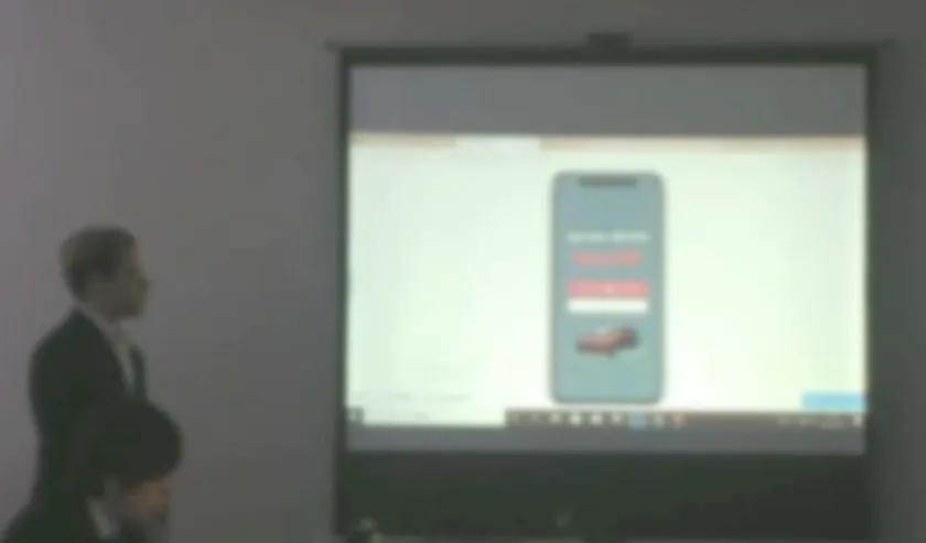 一橋大学神岡研究室学生が開発したアプリケーションをマツダ社内で説明する様子