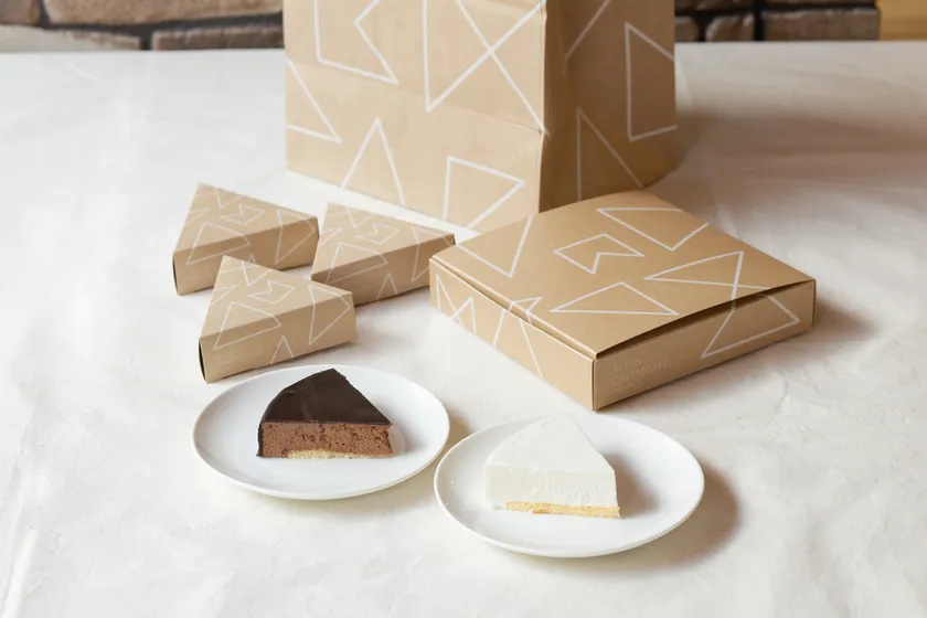 チーズケーキ専門店「アルペンチーズケーキ」で提供する口どけを追求したチーズケーキは、店頭の食べ歩きだけでなく、お持ち帰りしていただくことができます。パッケージにはロゴのこだわりでもある山を神格化させた△のマークをあしらい、チーズケーキを1ピースからでも持ち帰りいただける仕様にしています。そのため、お持ち帰りいただく際にも繊細なチーズケーキが崩れないで、ご自宅や大切な方の元へとお届けすることができます。