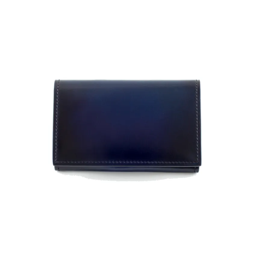 最高品質を誇るタンナー、レーデルオガワの水染めコードヴァンと、yuhakuの手染めの融合。ベーシックな仕様と落ち着いた表情の内装革が、コードヴァンの艶をより一層引き立てる。30枚程の名刺が収納可能な笹マチタイプの名刺入れは、収納する枚数によって厚みが調節できるので、ジャケットのポケットの中でもかさ張らず、シーンに合わせた活用ができる。