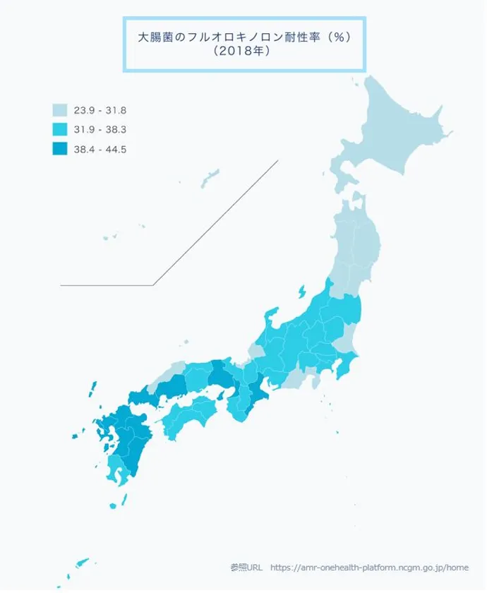 大腸菌のフルオロキノロン耐性は西高東低の傾向。地域により事情が異なるため、対策は個々に。