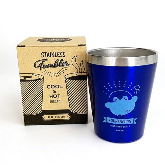深いブルーがきれいな、コウペンちゃんのステンレスタンブラーです。星のステッキを持ったコウペンちゃんのイラストが、とってもキュートですよね。