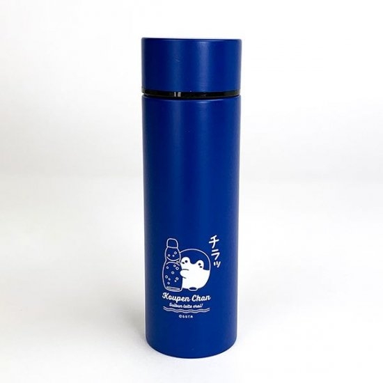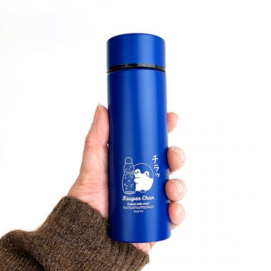 同じステンレス製の、水筒もご用意しています。ラムネを手に、チラ見しているコウペンちゃん♡何とも言えないかわいさですよね。