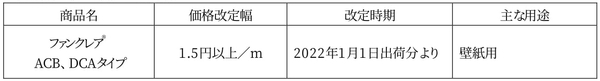 壁紙用軟質多層フィルム「ファンクレア(R)」の価格改定について