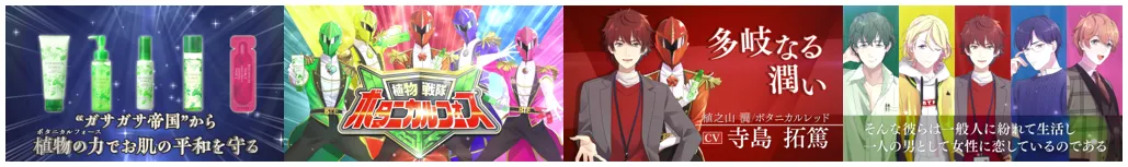 声優の皆さんが演じる“イケメン戦士”「植物戦隊 ボタニカル フォース」は、時にはかっこよく、時には甘いセリフで、肌の平和を守る存在です。本企画が、より多くの女性にスキンケアの重要性を実感し、またご自身の肌をケアする楽しみを発見するきっかけとなることを願い、様々なコンテンツを発信いたします。