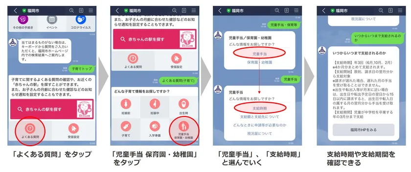 福岡市LINE公式アカウント、リニューアル ユーザーインタビューや行動観察を生かしたデザインに一新、 おむつ替えから児童手当まで情報検索を助ける 「子育て案内機能」も追加