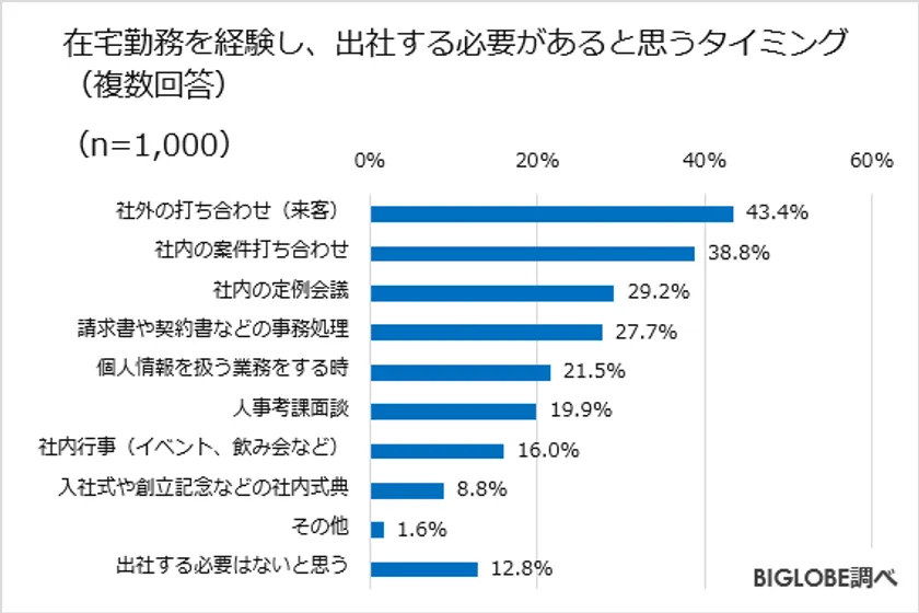 なお、「出社する必要はないと思う」と回答したのは、12.8%にとどまった。