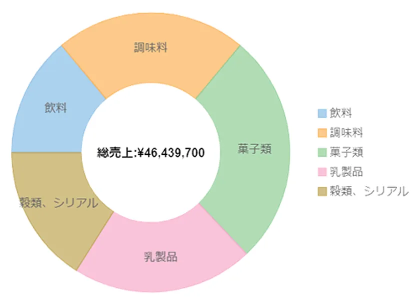 円チャートの内部にテキストを表示できます。データ視認性の高いチャートの実現が可能です。