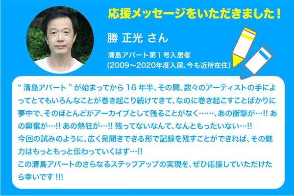 私たちは、清島アパートで暮らし、制作し、発表を行うアーティストの団体です。