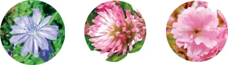(左から)キクニガナ、アカツメクサ、サトザクラ