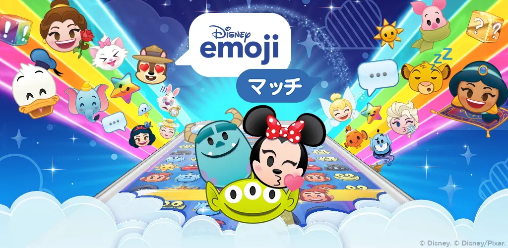 『ディズニー emojiマッチ』は、ディズニー、ピクサー、スター・ウォーズの絵文字がパズルになったスマートフォンアプリゲームです。アプリでは、人気の映画作品に登場するキャラクターやアイテムの「emoji」を3つ以上繋げて消していく、爽快感あふれる「マッチ3パズル」ゲームをお楽しみいただけます。
