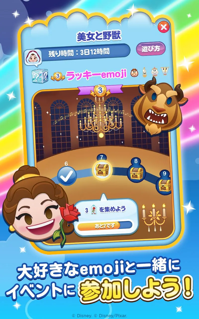 ゲーム内ミッションをクリアして ディズニー、ピクサー、スター・ウォーズのemojiを手に入れよう!