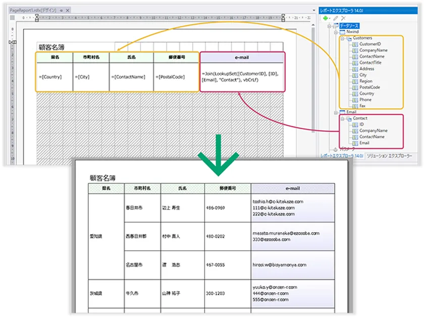 <ページ/RDLレポートの結合機能(ページレポート/RDLレポート)>