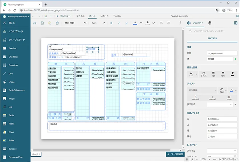 <Webデザイナコンポーネント(ページレポート/RDLレポート)※>