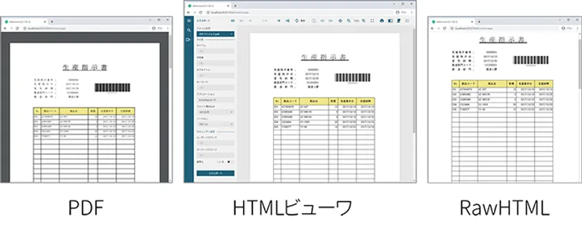 ASP.NET Web Forms専用の帳票ビューワコントロール「WebViewer」を刷新し、3つの出力タイプ(PDF、HTMLビューワ、RawHTML)をサポートしました。HTMLビューワは新機能の「JSビューワ」をベースに、モダンな外観やズーム機能、エクスポート機能などの機能強化を行っています。