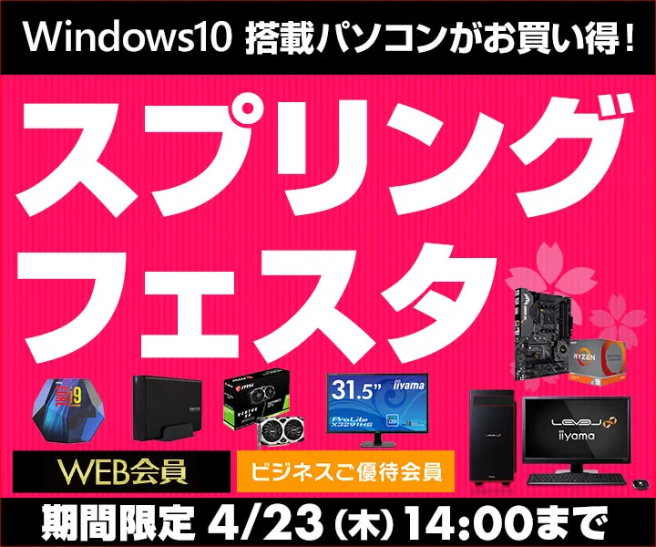 パソコン工房・グッドウィルを運営する株式会社ユニットコム(代表取締役:端田 泰三、本社:大阪市浪速区)は、パソコン工房Webサイトにて、2020年3月31日(火)から4月23日(木)14時までの期間限定で『スプリングフェスタ』を開催中です。