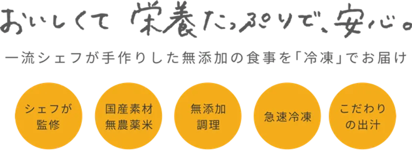 FIT FOOD HOMEとは、「おいしくて、栄養たっぷりで、安心。」をコンセプトに、一流シェフが手作りした無添加の食事を冷凍でお届けする健康宅食サービスです。素材・調理法・冷凍方法にまでとことんこだわり抜くことで、冷凍食品=おいしくない、カラダに悪そう、罪悪感、といったようなイメージを覆します。どれだけ忙しい毎日の中でも、「食事」は大切にして欲しい。そんな想いで、手間と時間をかけ抜いたこだわりの食事を皆様のご家庭にお届けします。