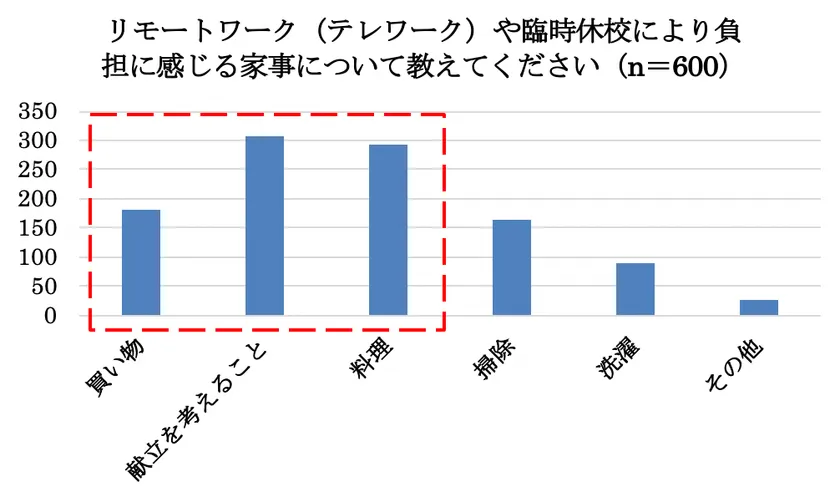 ― 4割の女性が家事増加で、負担1位は献立、2位は料理 ―