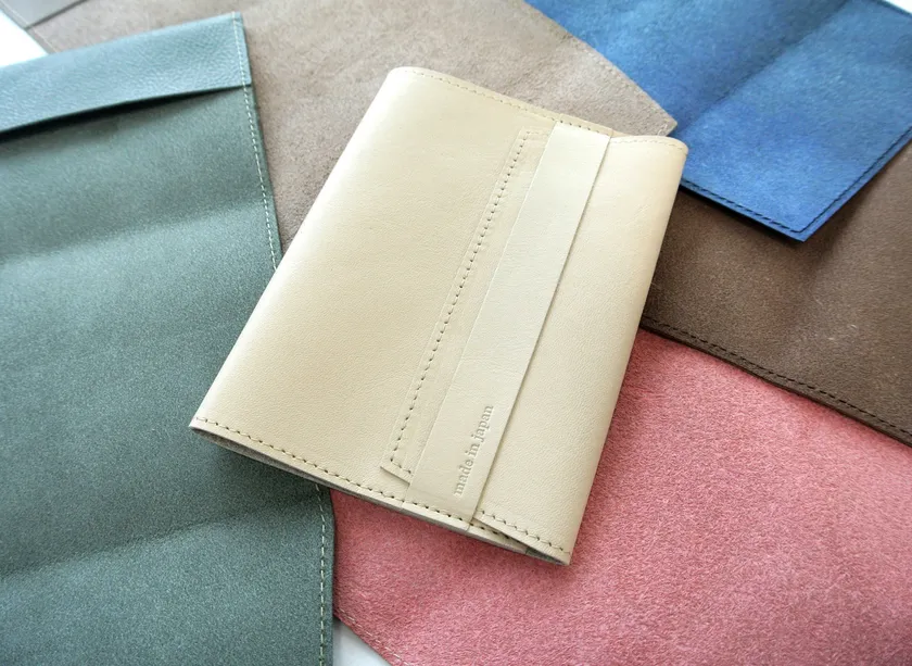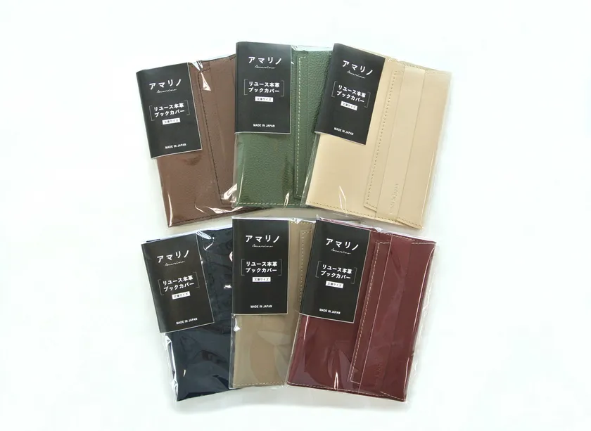 ▼「アマリノ」第一弾商品 日本製『本革残反でつくるリユースブックカバー』