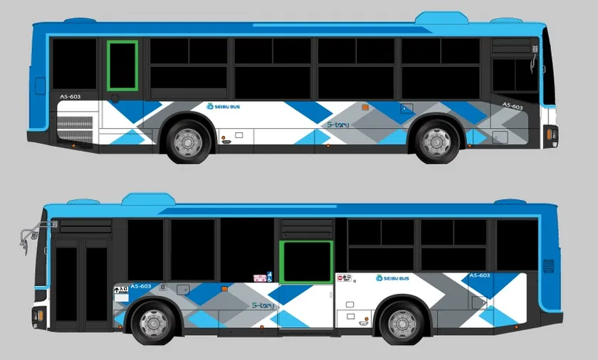 新カラーリングデザインは、西武グループの一員である当社を想起させるコーポレートブランドカラーを基調としているほか、都心部から多摩・埼玉県西部に横へと広がる鉄道各線を縦に走る路線バスが結ぶ当社事業エリアの特長を生かし、縦横に伸びる交通網をイメージしたもので、デザインテーマを「地域と温かく共存し、お客さまを包み込むような衣(クロス)となりたい」としました。また、新デザイン車両には日頃よりご利用のお客さまへ感謝の想いと、より親しみと愛着をもっていただきたく、愛称を「S-tory(エストリー)」と名付けました。