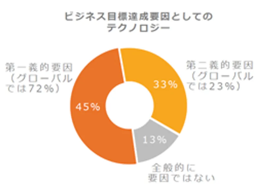 あらゆる種類のビジネスで、テクノロジーが欠くべからざる重要な成功要因とみなされています。CompTIAの調査対象となった日本企業のほぼ半数が、ビジネス目標を達成するための第一義的要因だと考えています(45%)。ほぼ3分の1が、テクノロジーは目標達成のための二義的要因だとみなしています(33%)。一方で、テクノロジーは何の要因にもなっていないと答えたのは13%です。第一義的テクノロジーとする傍ら、テクノロジーへの投資が十分でないという現実との間の乖離があります。5社のうち1社は、自社のテクノロジー支出への予算配分は「低すぎる」と答えています(22%)。さらに、日本のビジネスにおいて支出に対して得られる価値や利点を考えると、ほぼ3分の1の企業が、テクノロジーに対する支出に対し、素晴らしい、もしくは満足できるROIを獲得していると述べています(27%;グローバルの数値66%よりかなり低い)。テクノロジー投資からの満足いかないROIという認識のもととなっているのは、オペレーション保守に要するスタッフの時間、継続的保守費用やサポート料、複雑性/ユーザー経験の乏しさ、先行投資コスト/導入に多額の費用が必要、アップグレードの必要性/ビルトインの陳腐化、などです。