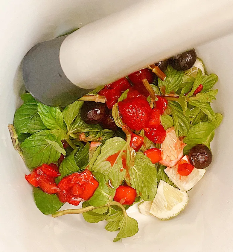ミントやライム、その他様々な生フルーツをマッシュ