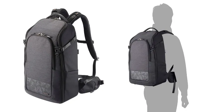 高い収納力を持ったデイパックスタイルのカメラバックパックです。シンプルな1気室構造のカメラ収納部は、ファスナーで全開できるので機材の一覧性に優れ、出し入れも容易に行えます。仕切り方次第で、カメラと一緒に小型のドローンやコントローラー等も収納が可能です。前面開口の1気室ながら上部まで回り込んだファスナーにより、天面から素早くカメラを取り出すことができます。